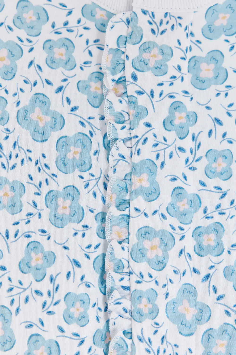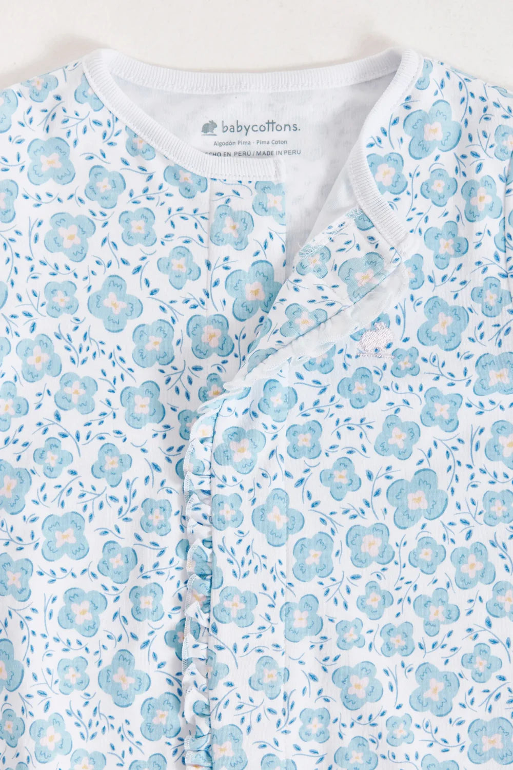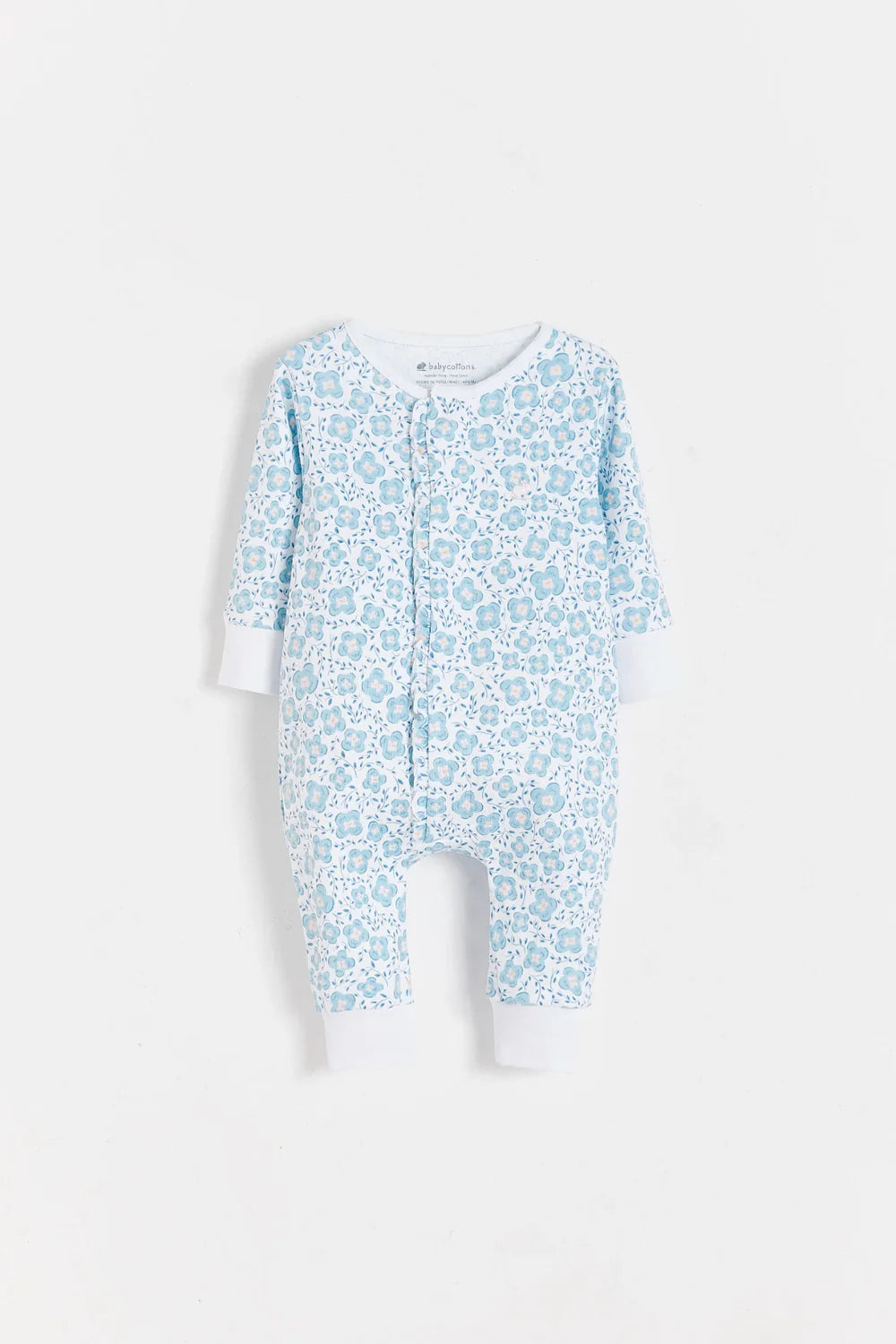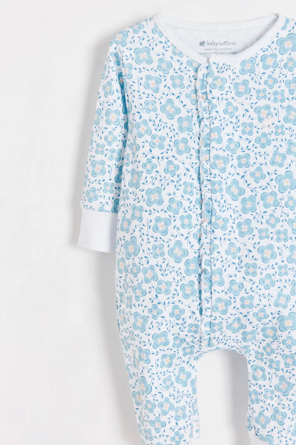 Enterito largo de suave algodón pima estampado. Cuello redondo y manga larga. Cuenta con un novedoso sistema de broches imantados invisibles en el frente de la prenda.