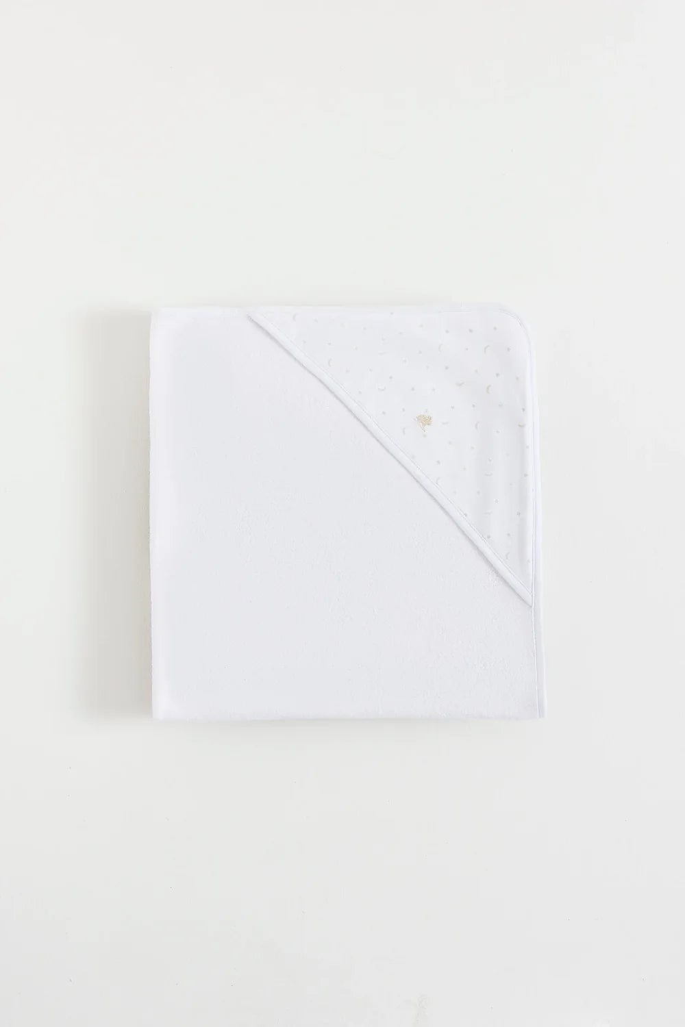 Toalla de algodón suave, diseñada especialmente para el cuidado del bebé, con manopla incorporada para facilitar el secado. Tiene una capucha de algodon pima con la estampa de la colección. Una opción encantadora y funcional para mantener al bebé seco y cómodo después del baño.