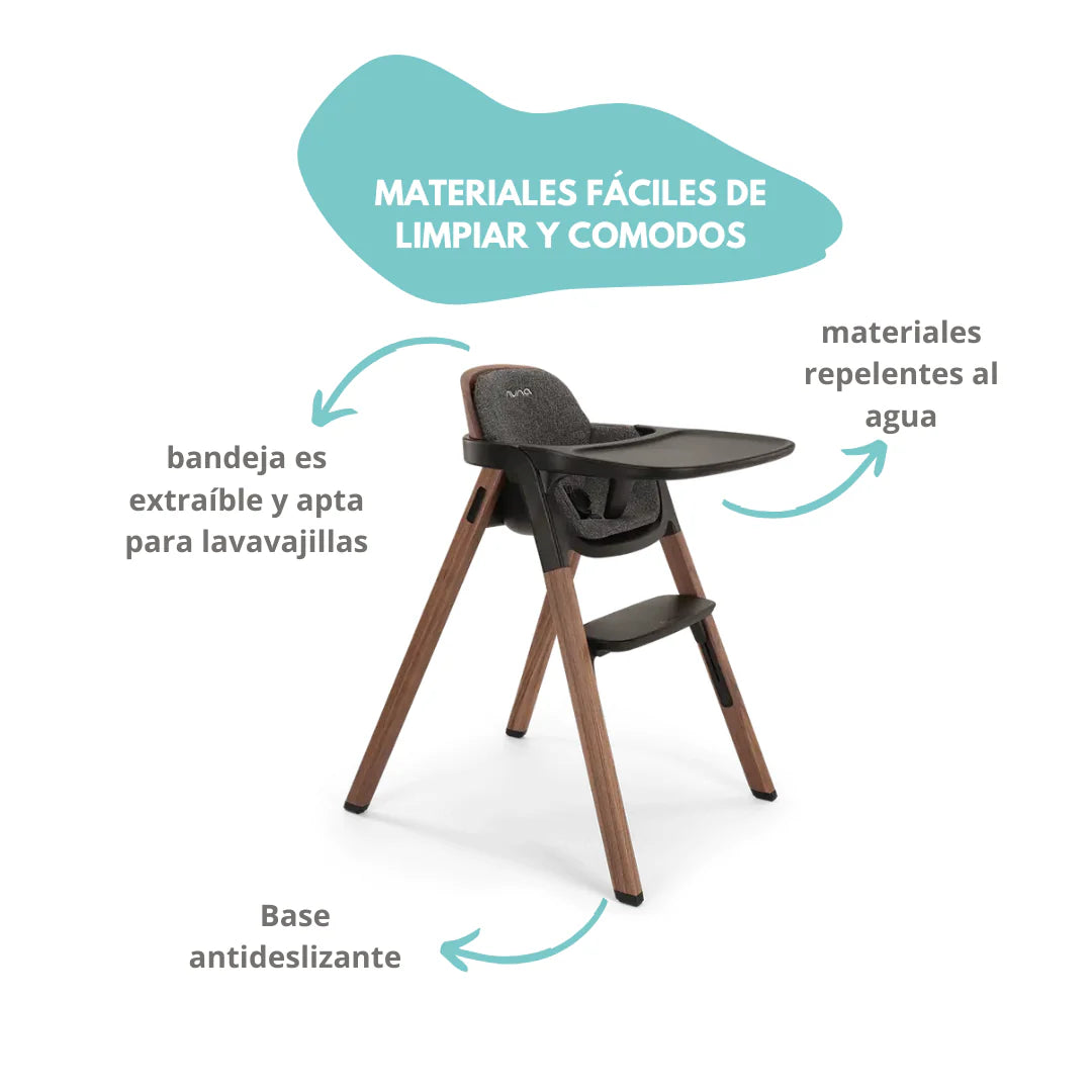 - El cojín de asiento es extraíble y lavable a máquina porque puede ensuciarse a la hora de comer